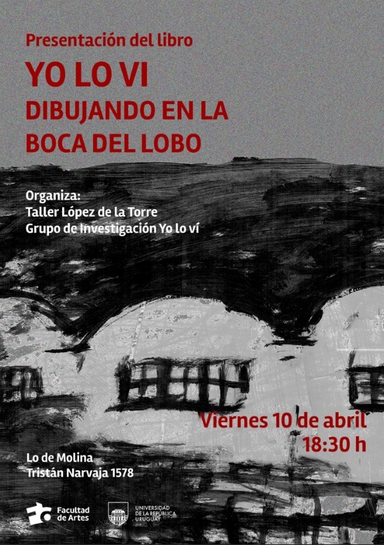 El Taller López de la Torre de la Facultad de Artes invita a la presentación de este libro, publicado por la Plataforma Integral Yo lo vi: Políticas visuales de los movimientos de derechos humanos de la Udelar. El libro recoge la experiencia de 4 años de acompañamiento universitario a las visitas guiadas al Sitio de Memoria 300 Carlos «Infierno Grande». Desde el comienzo de esta relación, un gran número de docentes, estudiantes de Facultad de Artes, ilustradores y dibujantes de nuestro medio han sostenido una práctica de dibujo de observación, parte de la cual se presenta en este libro, que cuenta además con un ensayo sobre el proceso, sus motivaciones y alcances simbólicos.