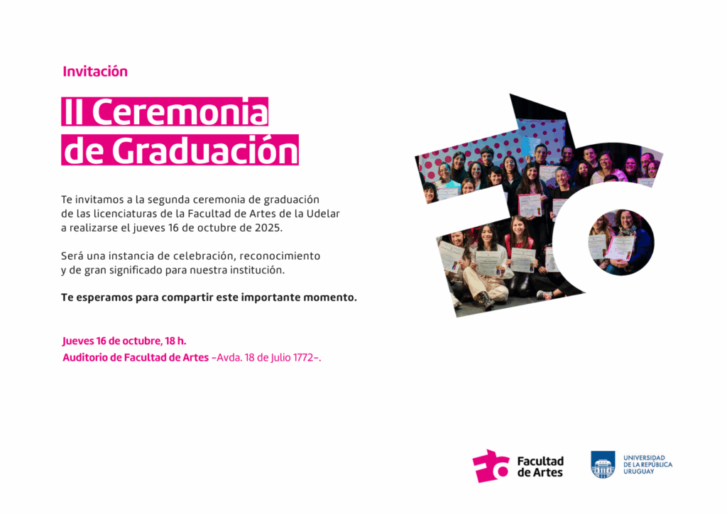 El próximo jueves 16 de octubre a las 18 horas, la Facultad de Artes realizará la segunda ceremonia de graduación de sus licenciaturas. Será una instancia para reconocer el recorrido académico de quienes culminan sus estudios de grado.