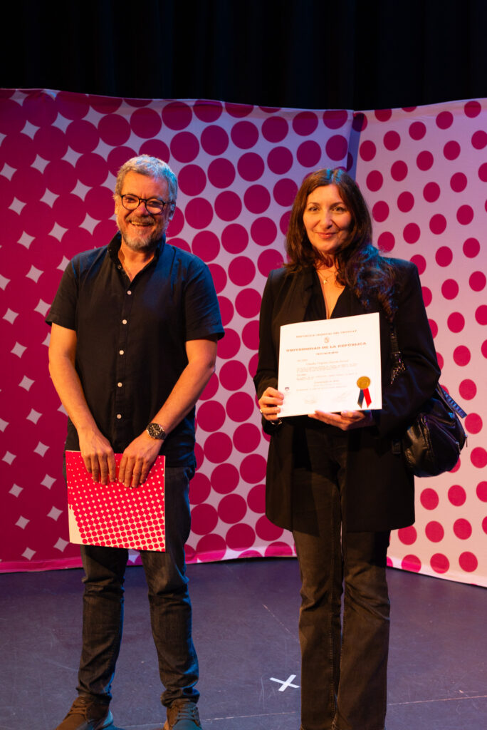 Finalmente, convocó a las y los nuevos egresados a seguir vinculados con la institución. “Una vez que se entra a la Universidad de la República, nunca se sale. Lo que se va transformando es la manera de pertenencia. Quienes van a recibir el título van a salir de la etapa de formación, pero van a entrar en la etapa de egresados y egresadas. La Universidad de la República y la Facultad de Artes en particular necesita de sus egresados y egresadas, son el vínculo con el quehacer profesional, con la demanda de necesidades de actualización que las instituciones tenemos que acompañar”.